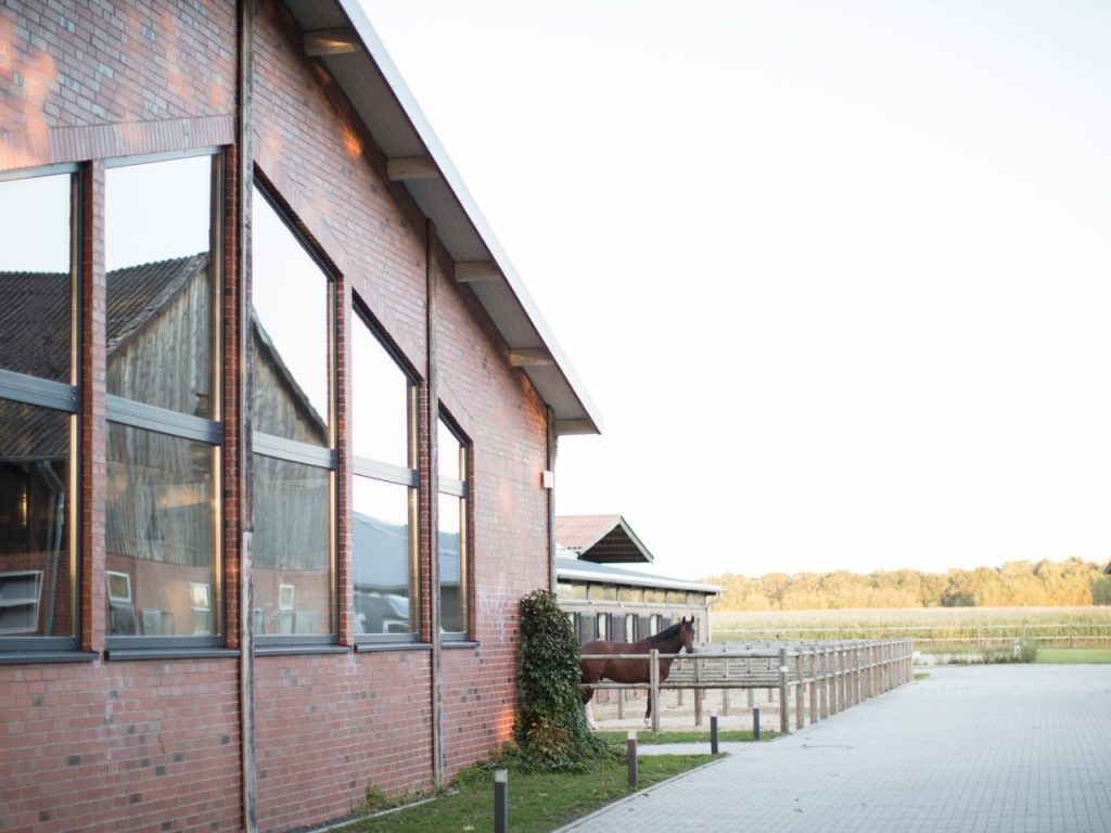 The centerpiece is a 20 x 60 m indoor riding arena with sand footing and an underground irrigation system. Adjacent to the arena is a bright, spacious barn featuring 18 Röwer & Rüb stalls with direct paddock access, along with tack rooms, solariums, and wash bays.